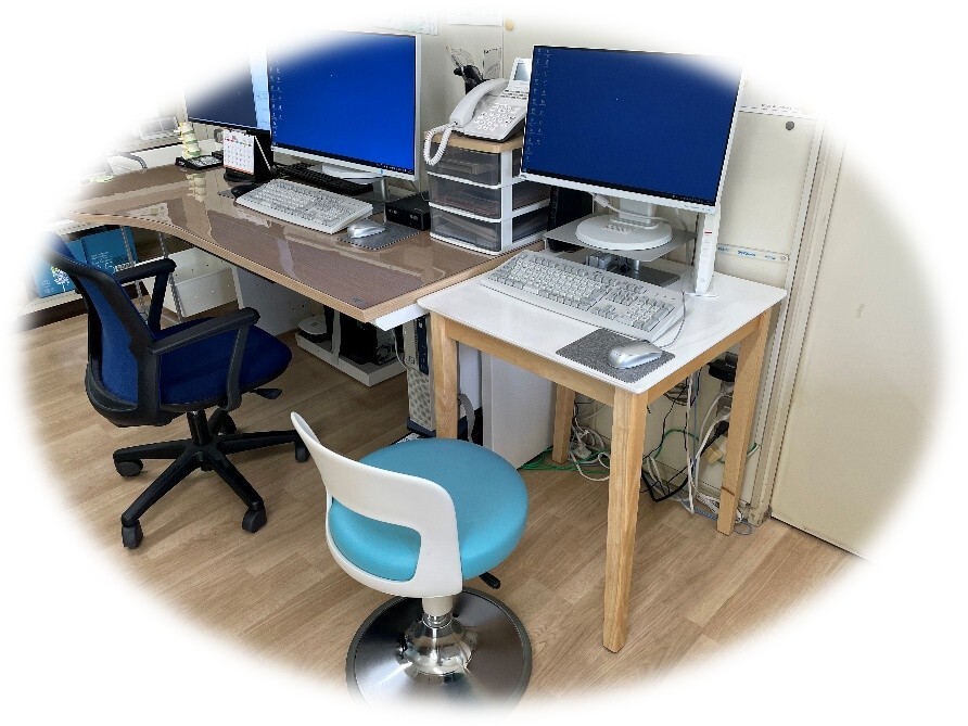 各診察室に医療クラーク専用のパソコンがあります。電子カルテの代行入力(カルテ記載、検査オーダー、予約etc)を中心に、医師の診療をサポートして頂きます。